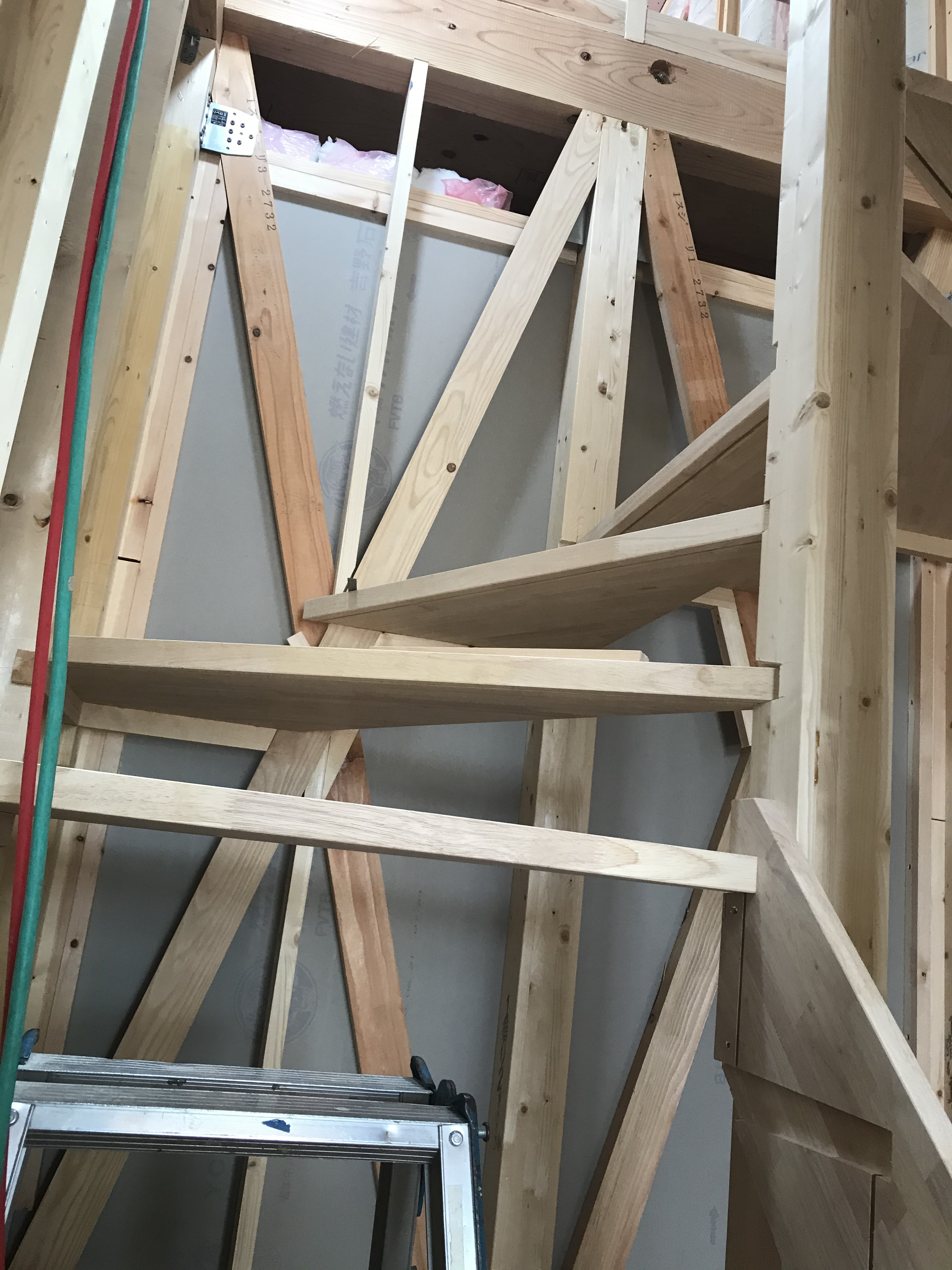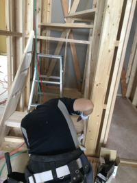 最終調整を経て、階段を架けていきます。