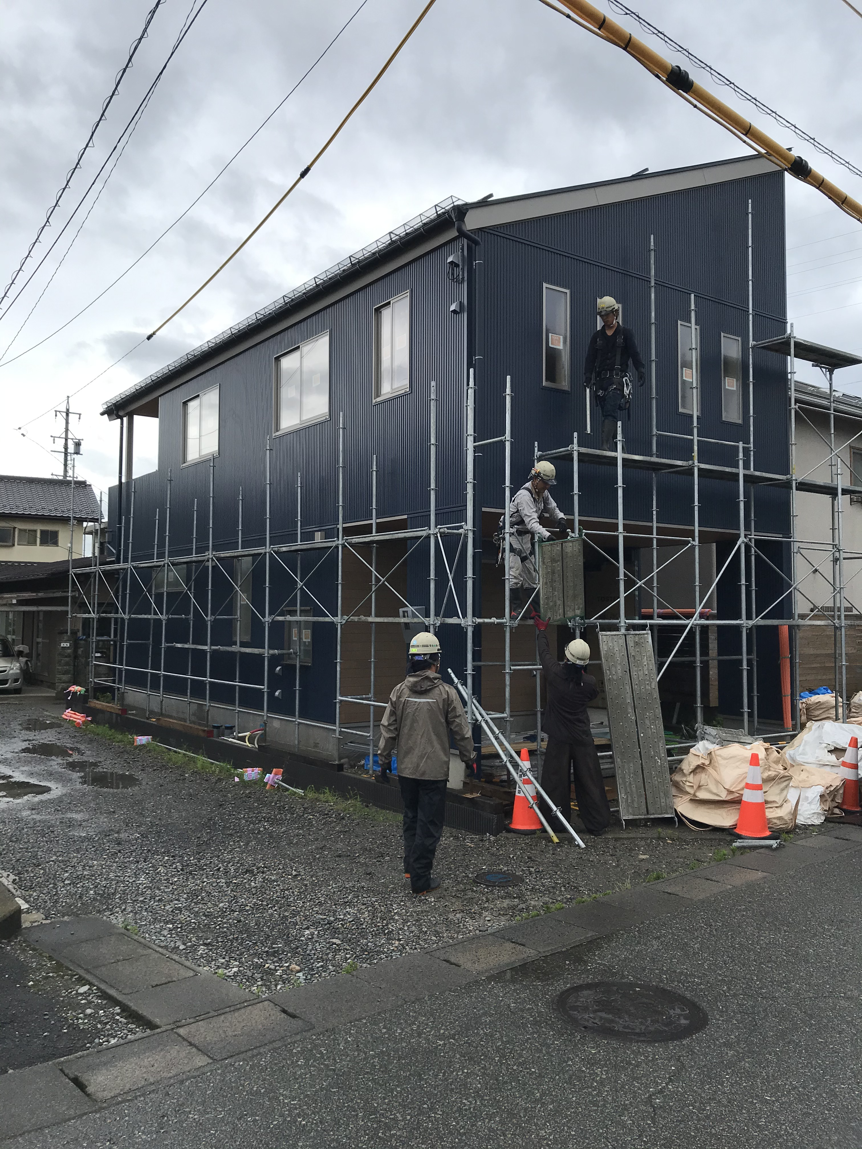 外部工事が終わったら、足場をばらします。